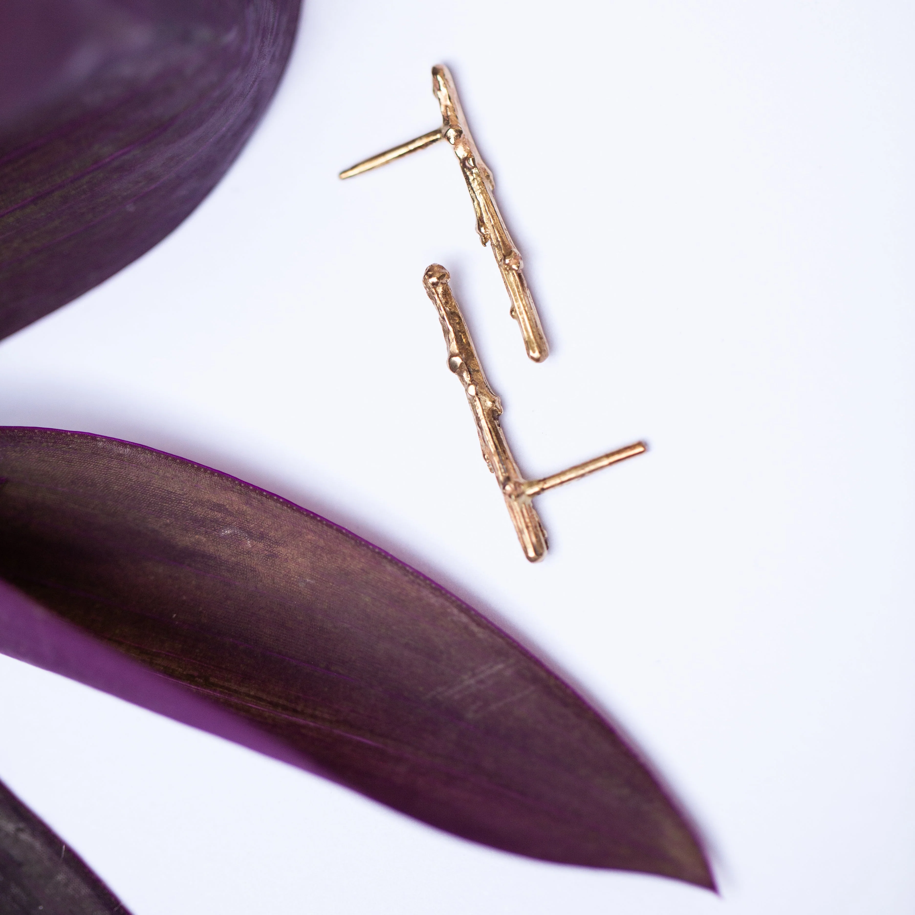 Crafted with utmost care and precision, these stud earrings are truly one-of-a-kind. The 14k solid gold composition ensures both durability and timeless elegance, while the branch texture adds a touch of organic charm to each piece.