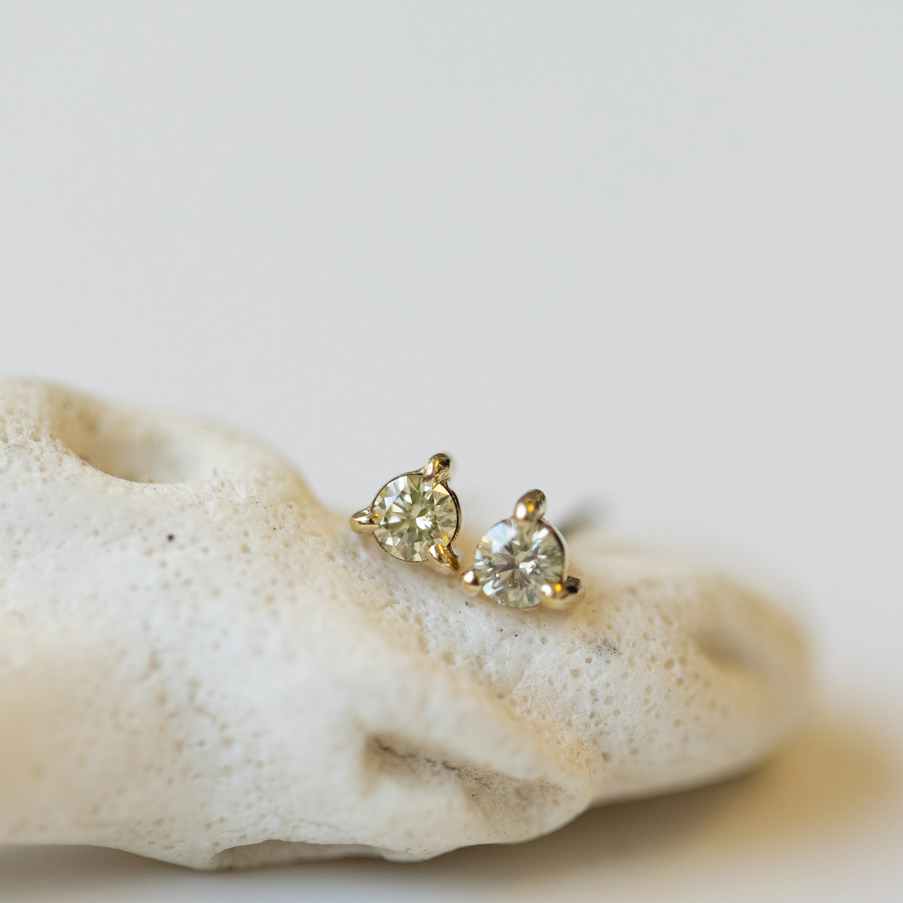 These classy and timeless stud earrings are set with three prongs containing approximately 0.20ct champagne diamonds (each 0.10ct) and made of 14k yellow gold, giving them classic wear.