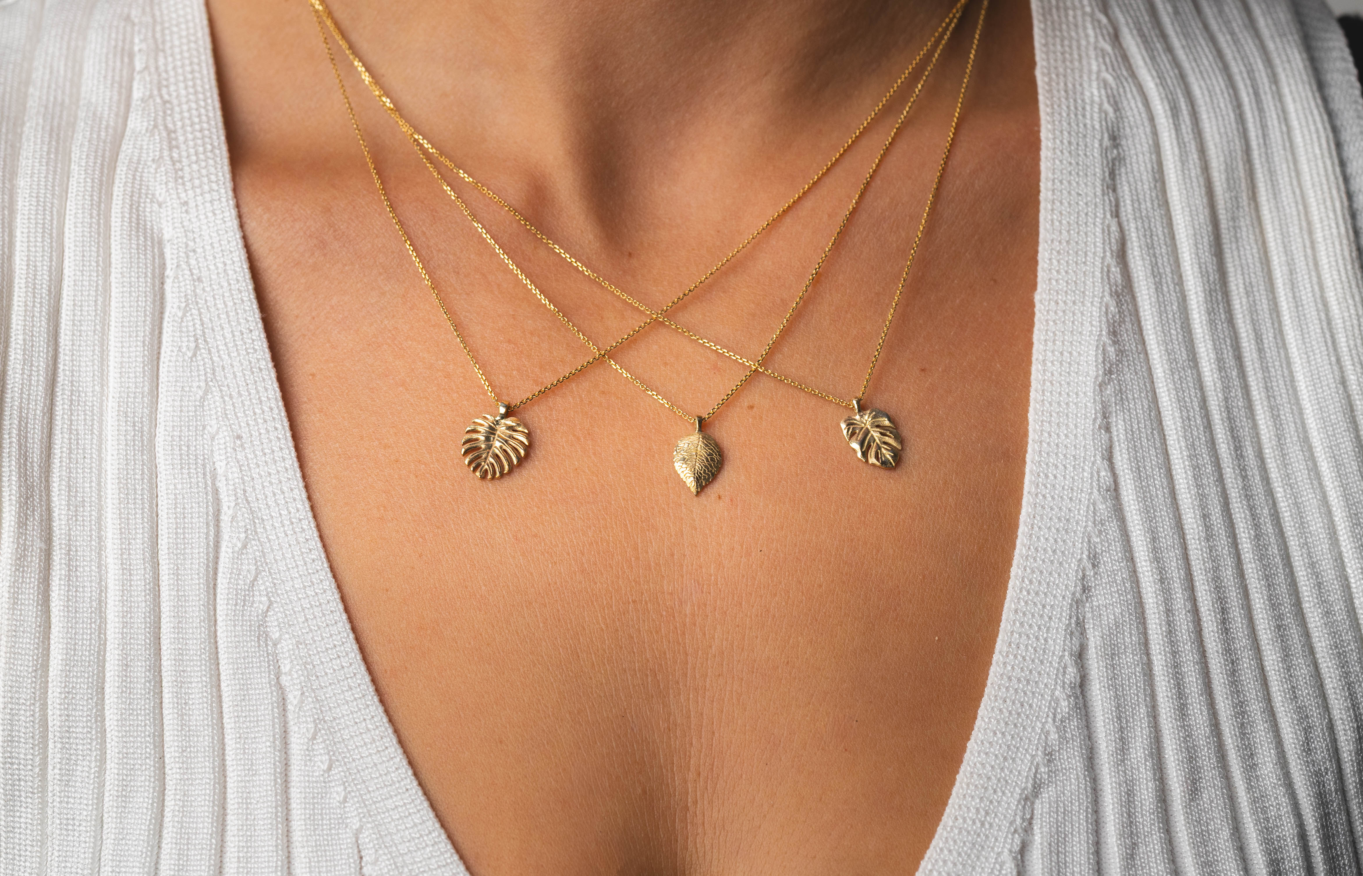 Crafted with meticulous care, this necklace features a stunning monstera leaf pendant made from 14K solid gold, ensuring both enduring beauty and quality. The intricate details of the leaf create a unique and captivating piece of botanical jewelry.