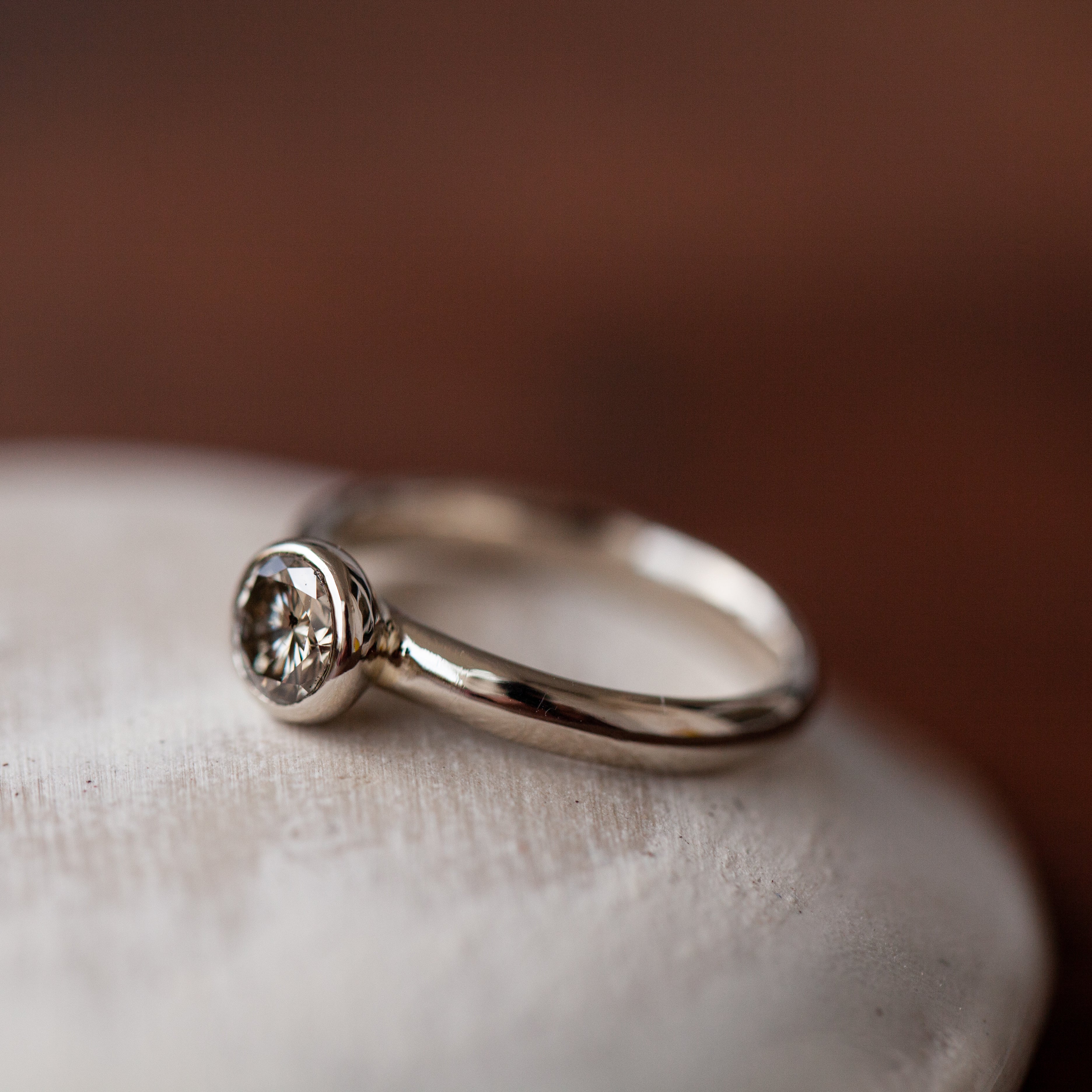 Champagne Diamond Solitaire Ring with Thin Band